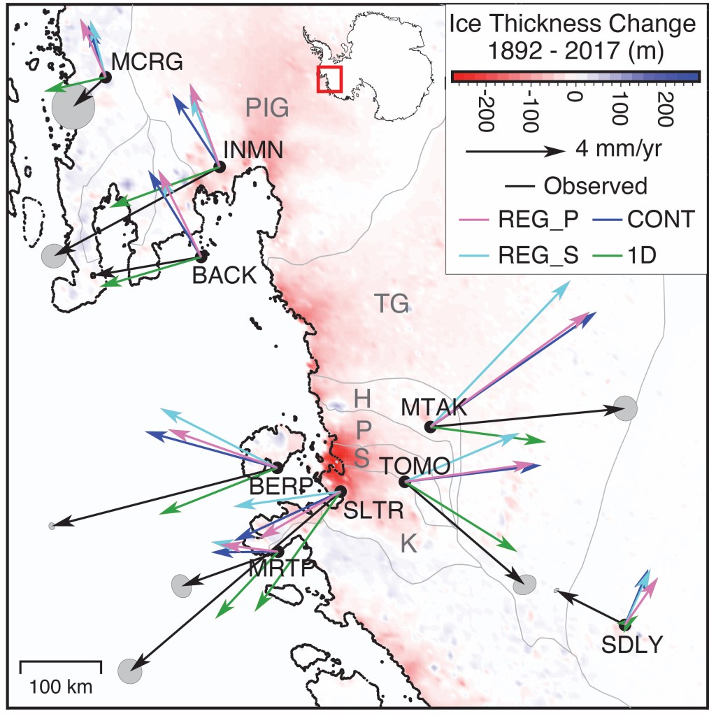 Predictions of the solid Earth response to changes in ice mass distribution, or glacial isostatic adjustment (GIA), are heavily reliant upon our understanding of the Earth’s viscoelastic structure in polar regions. It is well established that the ice sheet evolution depends on the bedrock elevation and sea level change at the grounding line (where ice goes from sitting on bedrock to floating on the ocean). My current work shows that regional variability in solid Earth structure will impact both sea level and bedrock elevation predictions for ice mass changes in West Antarctica over the next few centuries. This work has implications for improving constraints on the projected sea level contribution of the Antarctic and Greenland Ice Sheets.